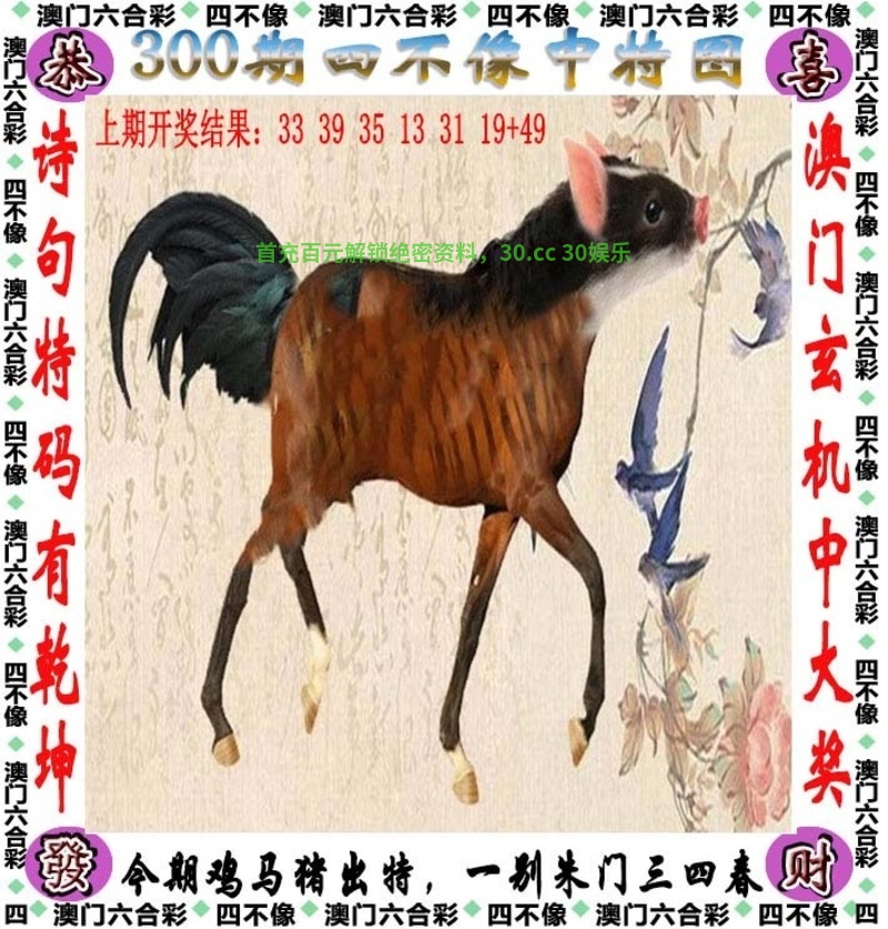 300期:今期鸡马猪出特,一别朱门三四春开發00准 |